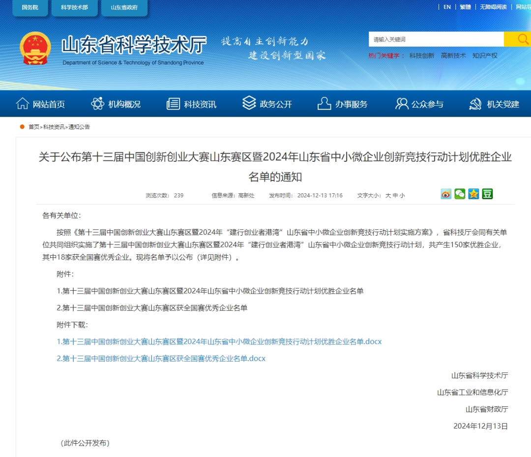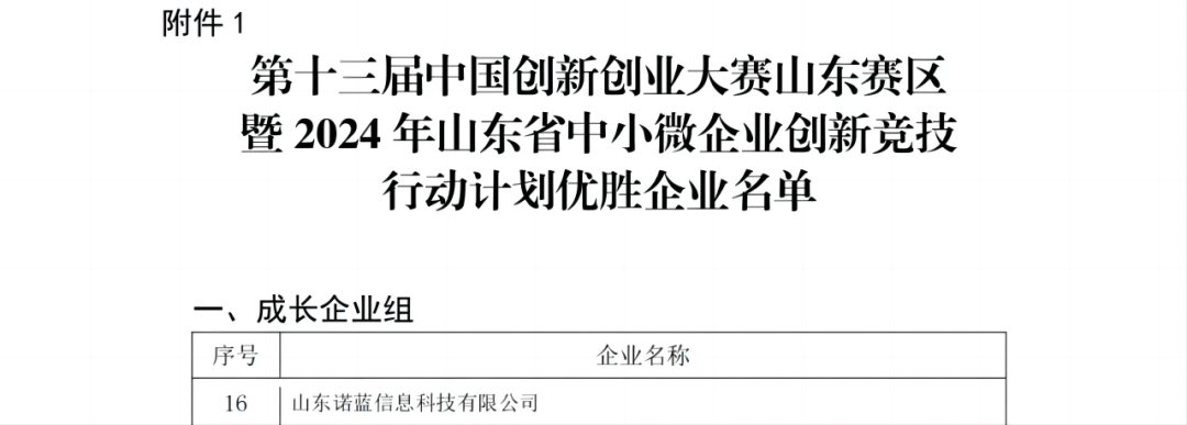 山东诺蓝信息科技有限公司在第十三届中国创新创业大赛山东赛区中脱颖而出,荣获了优胜企业的殊荣!